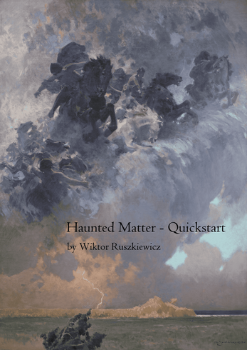 Haunted Matter is a role-playing game for those who choose drama over simulation and decision over supernatural power. There are no levels, classes, or builds. There is risk, dirt, blood, and pressure.